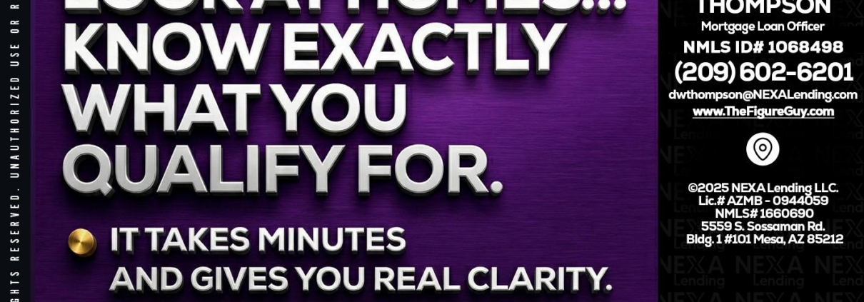 Hi, my name is David Thompson. I’m a Loan Officer with NEXA Lending LLC., offering personalized mortgage solutions, fast customized quotes, great rates and service with integrity.