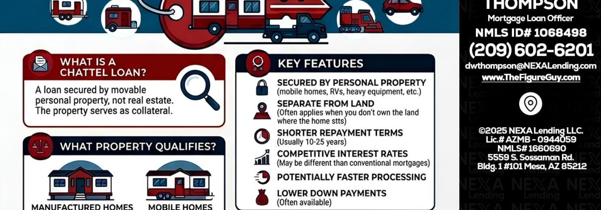 Hi, my name is David Thompson. I’m a Loan Officer offering personalized mortgage solutions, fast customized quotes, great rates and service with integrity. If you’re interested in learning more about the Chattel loan or any other, just let me know and I’ll walk you through your options.