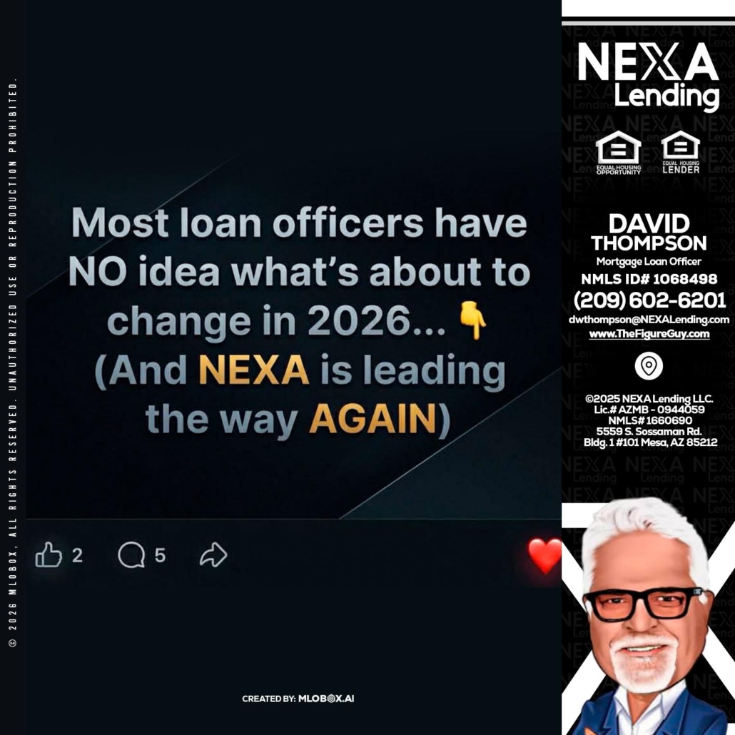 Hi, my name is David Thompson. I’m a Loan Officer with NEXA Lending LLC., offering personalized mortgage solutions, fast customized quotes, great rates and service with integrity.
