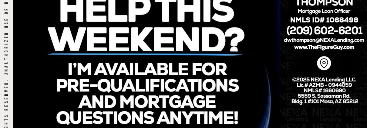 REAL ESTATE AGENTS - David Thompson -Mortgage Loan OfficerHi, my name is David Thompson. I’m a Loan Officer with NEXA Lending LLC., offering personalized mortgage solutions, fast customized quotes, great rates and service with integrity.
