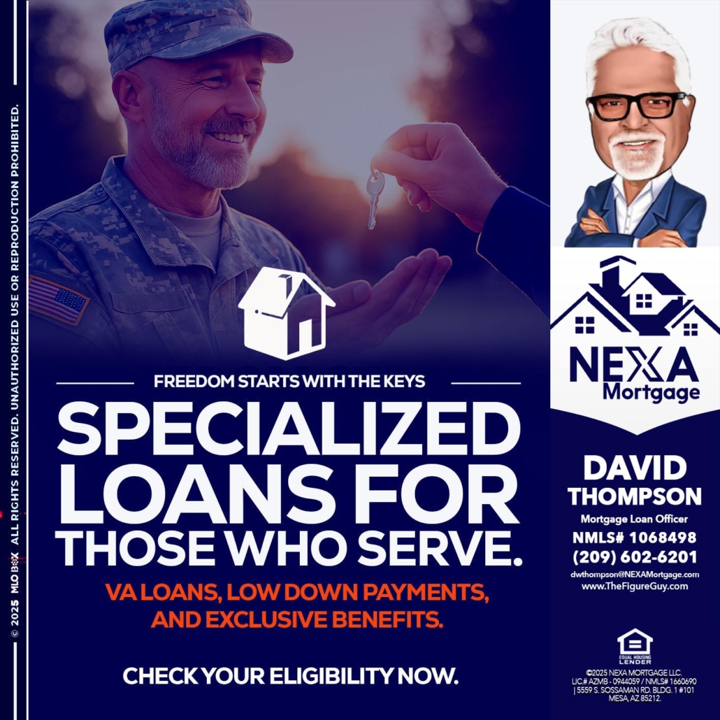 Hi, my name is David Thompson. I’m a Loan Officer with NEXA Mortgage LLC., offering personalized mortgage solutions, fast customized quotes, great rates and service with integrity.