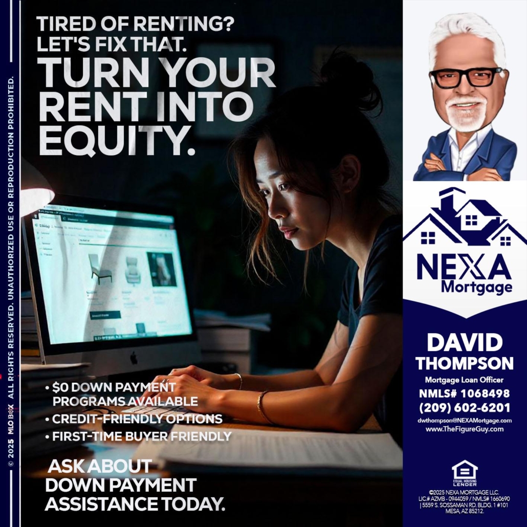 tired of renting? - David Thompson -Mortgage Loan OfficerHi, my name is David Thompson. I’m a Loan Officer with NEXA Mortgage LLC., offering personalized mortgage solutions, fast customized quotes, great rates and service with integrity.